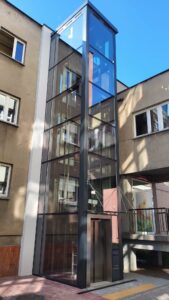 Współpraca ze sprawdzonymi producentami stalowych konstrukcji szybów windowych sprawia, że jesteśmy w stanie dostarczyć zarówno dźwigi jak i szachty stalowe dostosowane do projektu i technologii ich montażu. Koordynacja i wieloetapowa weryfikacja projektu w zakresie ustalenia punków mocowań dźwigu w szybie sprawia, że obie konstrukcje do siebie pasują. Oferujemy stalowe konstrukcje szybów spawane lub skręcane wyłącznie w dostawie z dźwigami naszej produkcji. Istnieje również możliwość wykonania obudowy szybów np. szkłem lub płytami warstwowymi w wykonaniu wewnętrznym oraz zewnętrznym fasadowym.